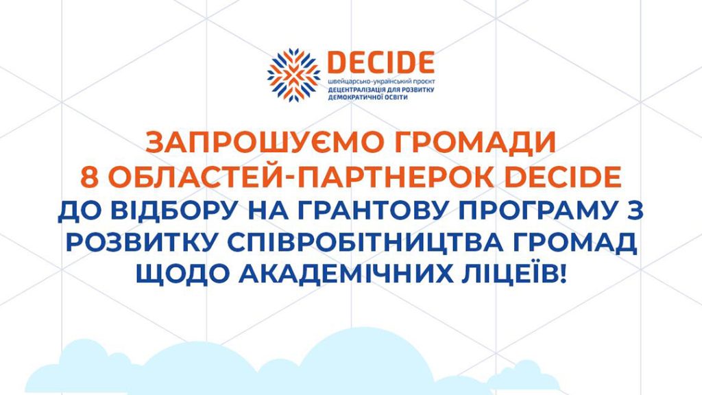 ДО 1 000 000 ГРН — ГРАНТИ ДЛЯ ГРОМАД НА ВІДКРИТТЯ ТА РОЗВИТОК АКАДЕМІЧНИХ ЛІЦЕЇВ (DECIDE)