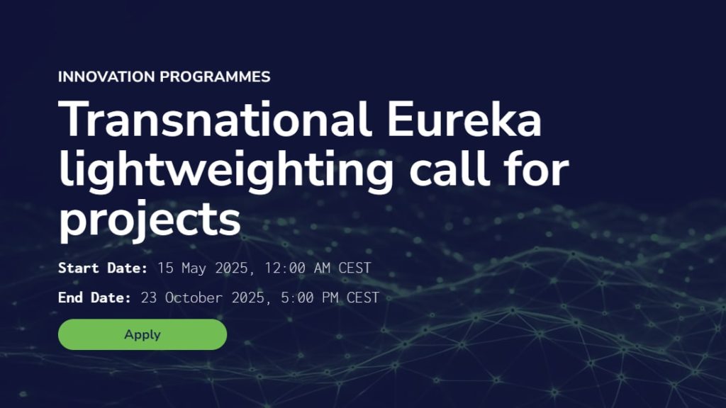 Замовити оформлення грантової заявкиНаціональні фінансові органи Австрії, Бельгії (Фландрія та Валлонія), Чилі, Франції, Німеччини, Литви, Польщі, Португалії, Словаччини, Південної Кореї, Іспанії, Туреччини та України виділили фінансування для організацій, які співпрацюють над міжнародними НДДКР-проєктами у сфері зменшення ваги (lightweighting). Консорціум проєкту повинен включати організації, що базуються мінімум у двох із зазначених у цьому заклику країн/регіонів.
