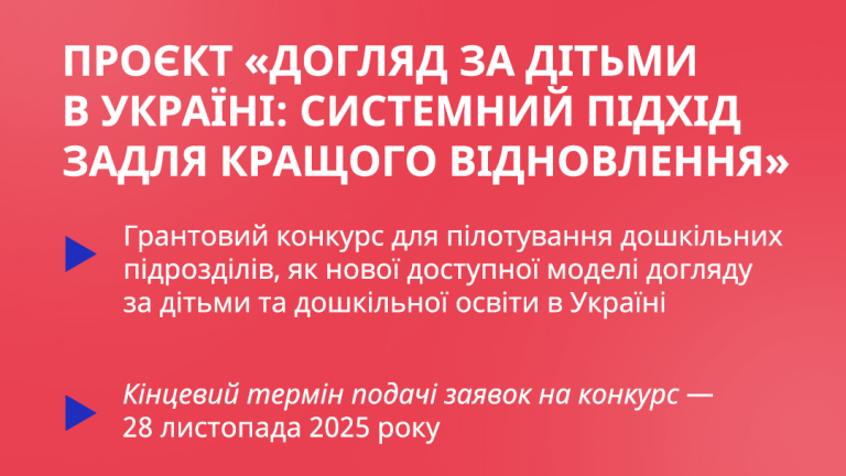 За результатами відкритого конкурсу щонайменше два учасники отримають експертний супровід та фінансову підтримку для створення та діяльності пілотного дошкільного підрозділу.
