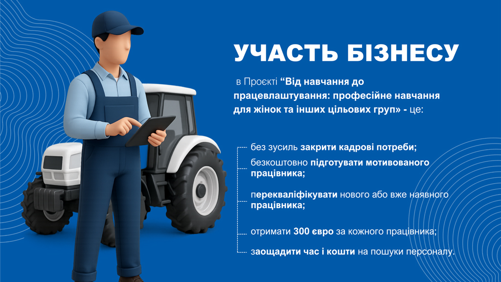 ДО 300 ЄВРО НА ЛЮДИНУ — ГРАНТИ ДЛЯ БІЗНЕСУ НА ПЕРЕКВАЛІФІКАЦІЮ ФАХІВЦІВ РОБІТНИЧИХ СПЕЦІАЛЬНОСТЕЙ, ЗОКРЕМА ЖІНОК (ФРП)