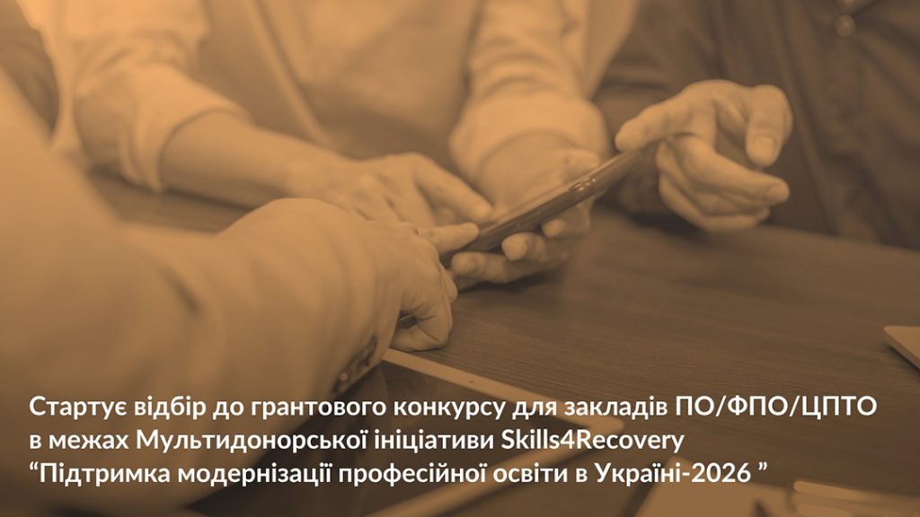 ДО 4 036 368 ГРН — ГРАНТОВИЙ КОНКУРС ДЛЯ ЗАКЛАДІВ ПО/ФПО/ЦПТО (SKILLS4RECOVERY)